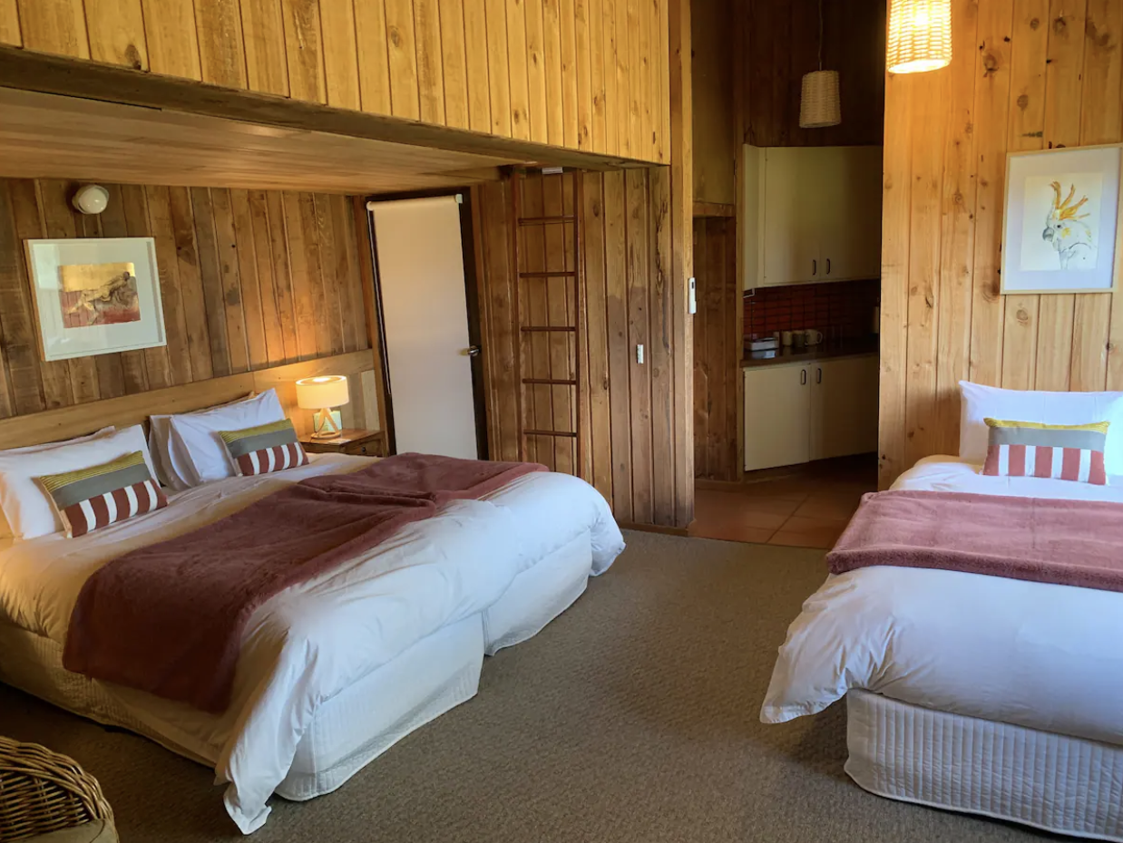 This cozy room has two King singles and shares a bathroom with King Parrot. -